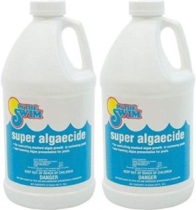 In The Swim Super Algaecide is a professional-grade formula designed to prevent and eliminate various algae types, including mustard algae. It features a low-odor, non-foaming composition.