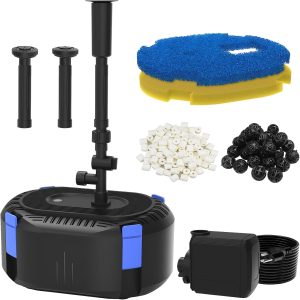 For small backyard ponds where building complex plumbing isn’t practical, this all‑in‑one system offers a complete solution that both cleans and circulates water. Its layered filter media supports biological breakdown of fish waste while keeping water clear.