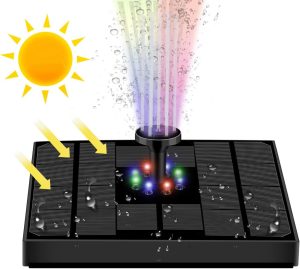 2. Solar Water Fountain With Battery Backup and LED Lights