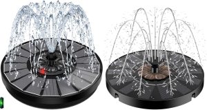 The Yzert Solar Fountain Pump is a budget-friendly option with a built-in 2000mAh battery pack and a solar panel optimized for capturing sunlight efficiently. It’s compact and perfect for small ponds, bird baths, and garden water features where subtle movement and battery-assisted runtime are desired.